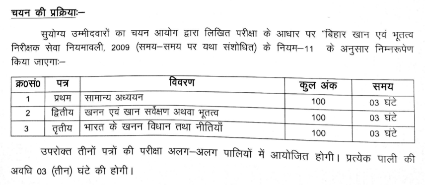 Bihar SSC Mines Inspector Exam Pattern PDF